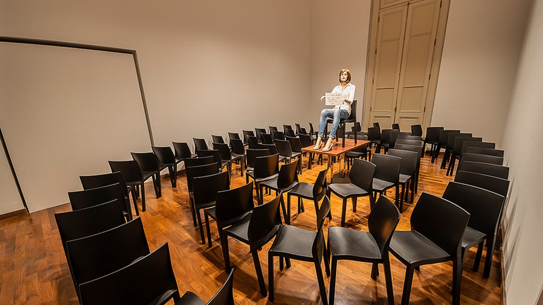 De esa muestra, sobresalió la instalación de la artista española Esther Ferrer, que partió de una muestra conceptual con sillas que simbolizaban los femicidios en España. Una silla vacía por cada mujer asesinada. “Es una de las obras que incluimos en esta exposición: cuando inauguró en marzo de 2021 había 41 sillas, en octubre ya había 233. Las sillas que al comienzo estaban en una sala invadieron las otras. Visualmente impactante –asegura Giunta-, la obra sigue los datos del Observatorio Lucía Pérez, una agrupación que lleva adelante un activismo intenso contra los femicidios. Cuando cambia el mundo es un título que no remite a la idea de que nosotros cambiamos el mundo, sino que el mundo cambió. A lo que puede seguir una pregunta, cuando cambia el mundo ¿qué hacemos? Esa es la pregunta que me hice durante toda la pandemia: el mundo paró, ¿qué hacemos mientras tanto?”.